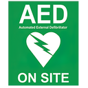 A 100 x 120mm in size Australian Resuscitation Approved AED signage sticker.
