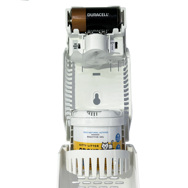 Our unique airPROTECT air dispenser is a stylish Fan Dispenser that works to distribute our Kitty Litter Odour effectively.